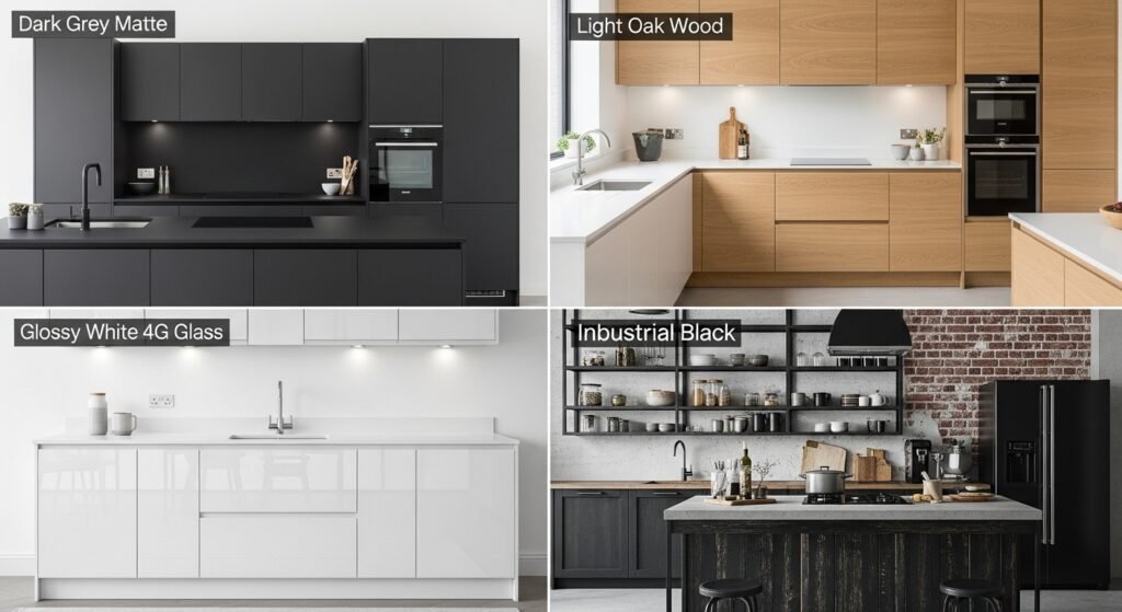 The Sleek Look: 4G Glass Doors (Aluminium frame with glass front) are incredibly popular in Malaysia right now. They reflect light, making small kitchens look bigger.